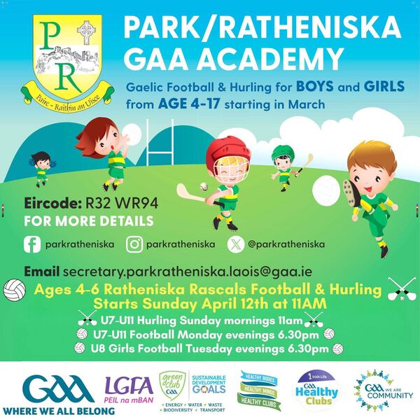 PARK Ratheniska GAA Club is preparing to welcome a new generation of young players as its Nursery and Academy programmes return for the 2026 season.