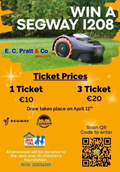 The raffle opens on 1 February, with a special event taking place on the premises of E.C. Pratt on 11 April. Attendees can expect special demonstrations from the Laois Fire Brigade and entertainment for children.